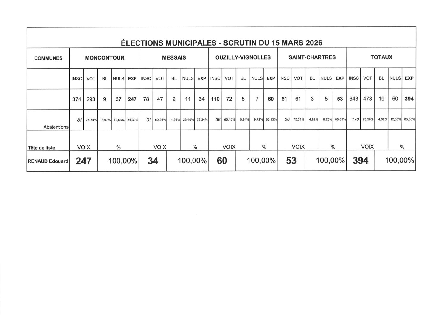 Résultats des élections municipales à Moncontour